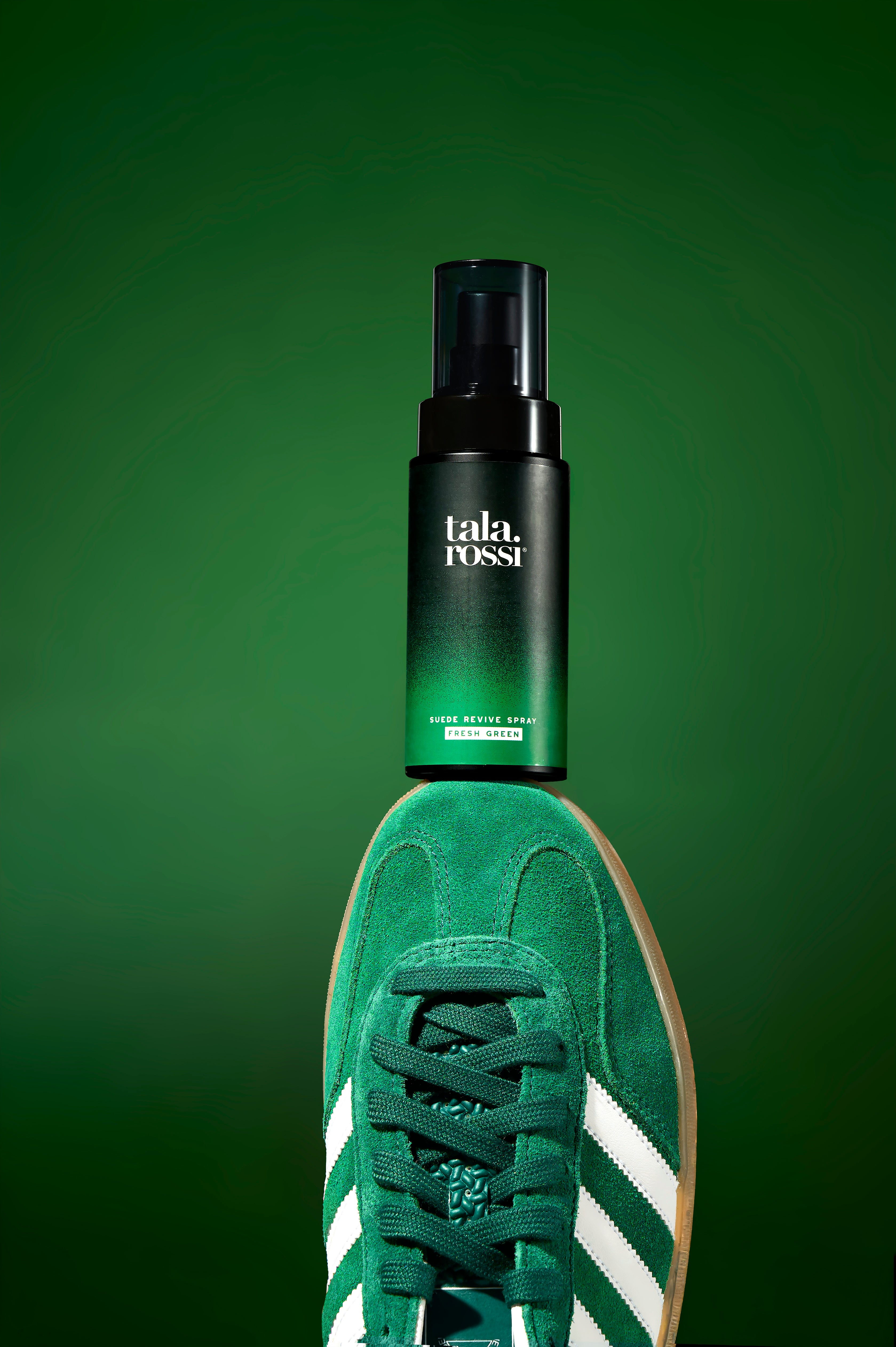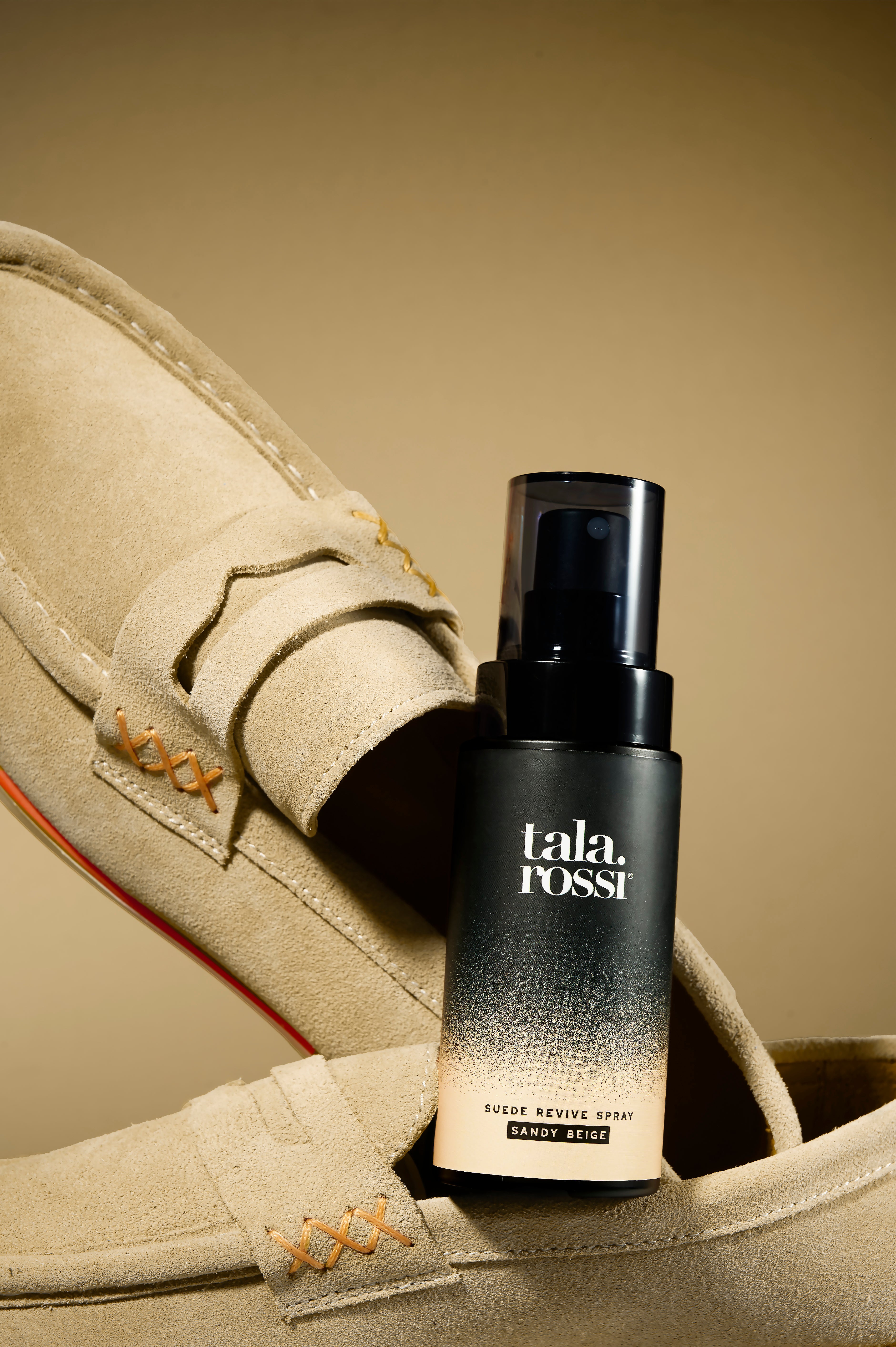 It all started with my yellow suede shoes. At office drinks, a tall guy accidentally stepped on my brand new yellow suede shoes, leaving a big black scuff mark. I knew that trying to fix it would ruin the colour, so I went looking for a suede revive spray that could match that shade of yellow. Turns out, I wasn’t the only one struggling to keep suede looking new — that’s how Tala Rossi was born.