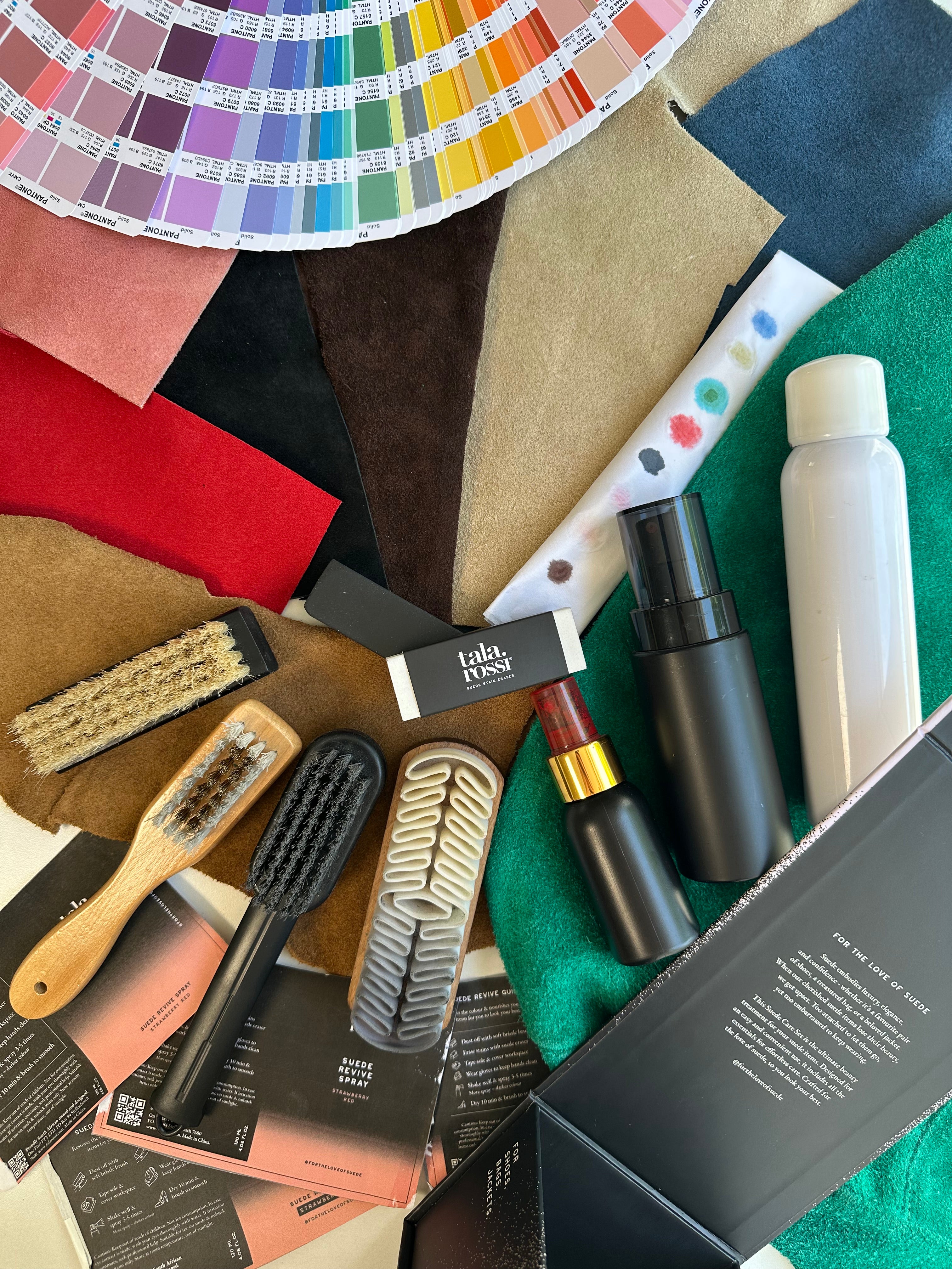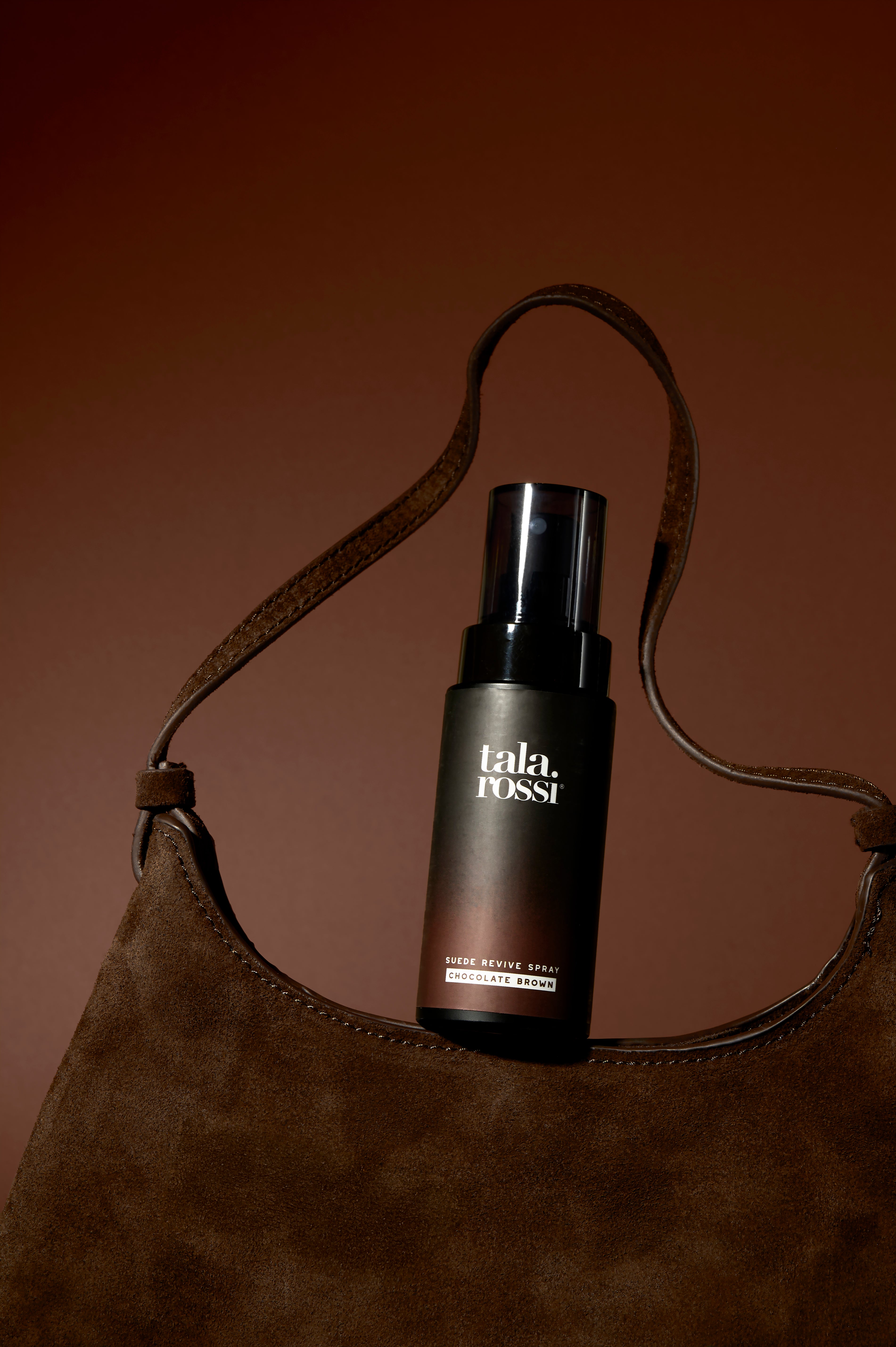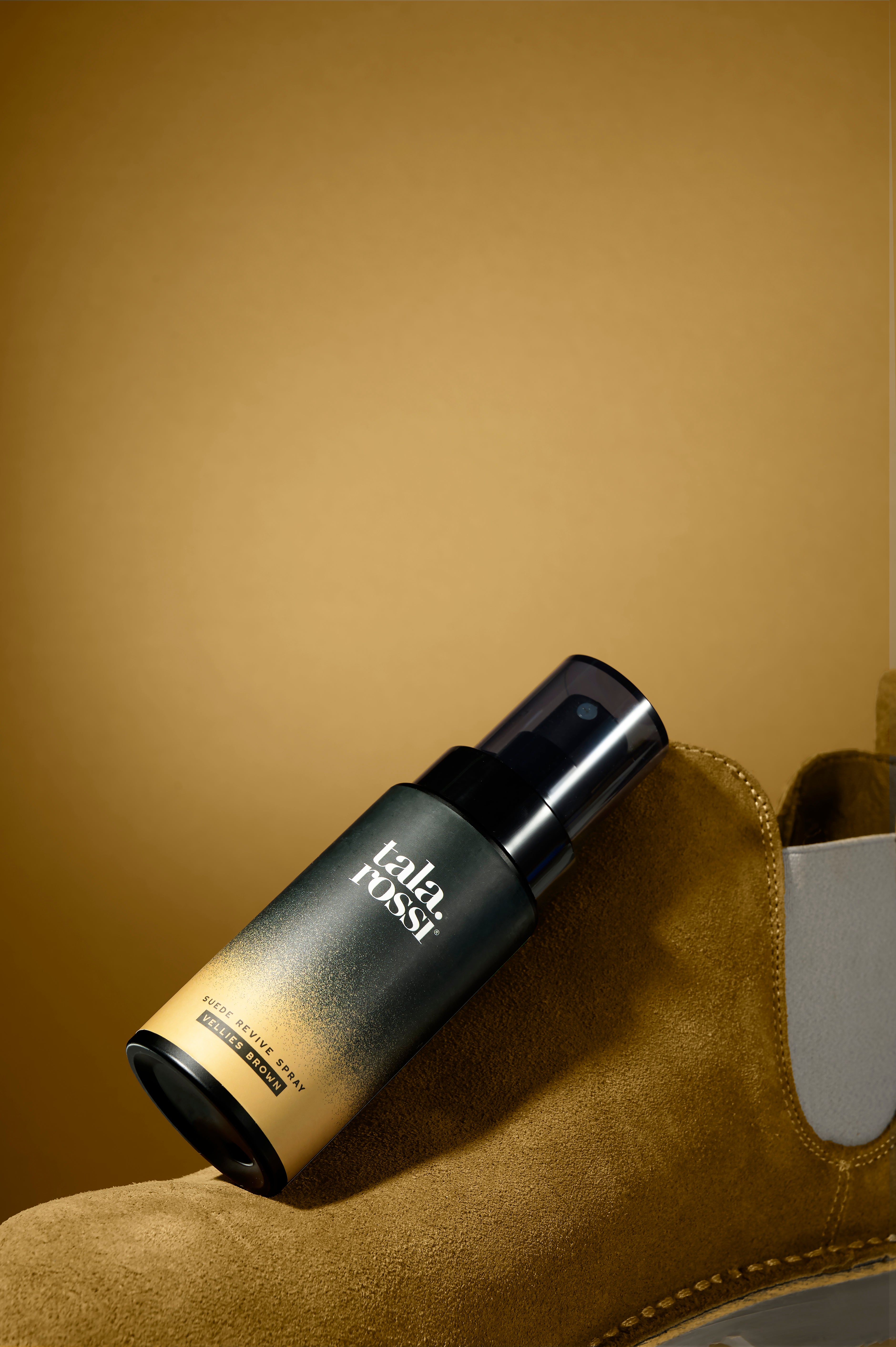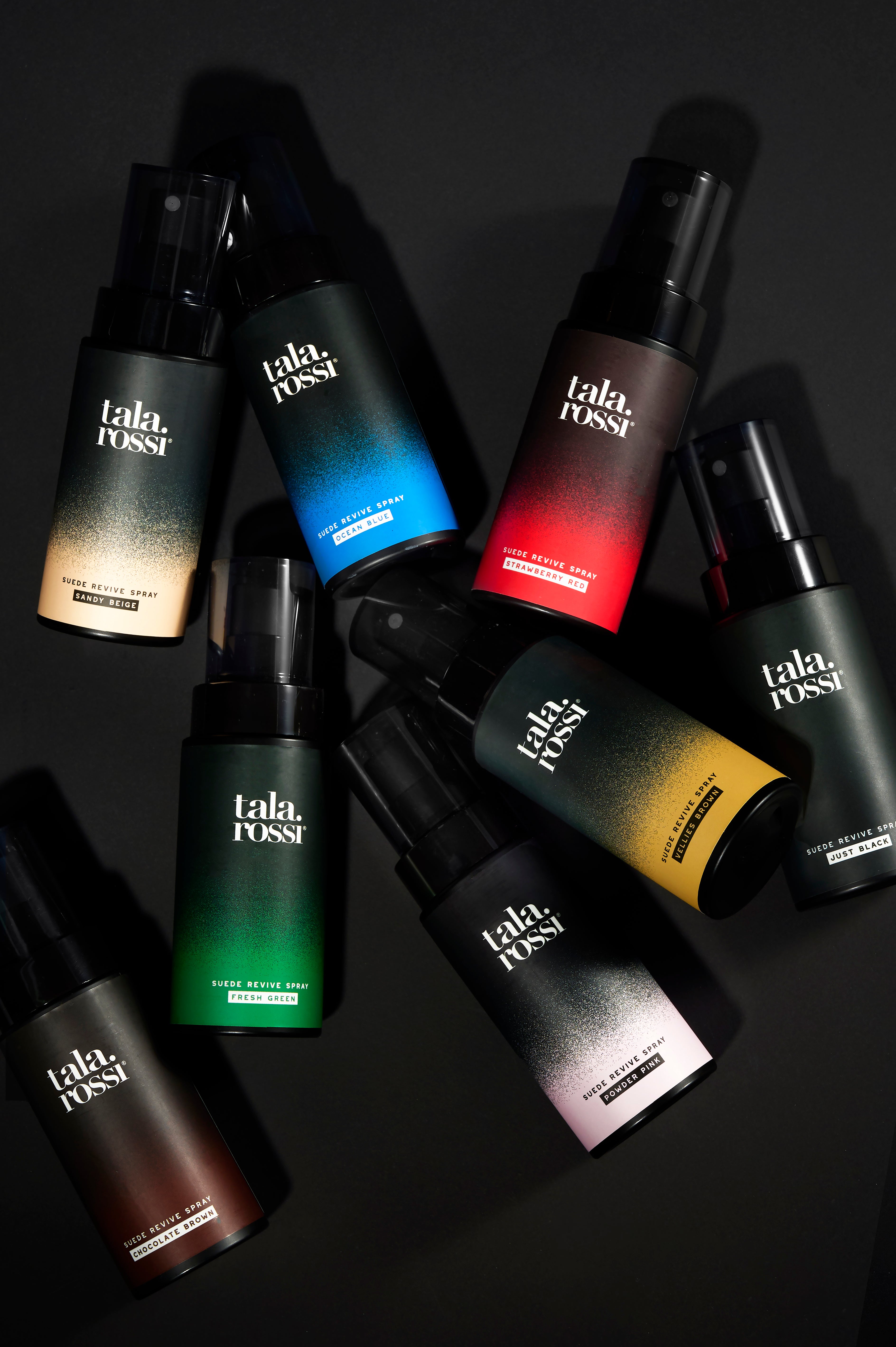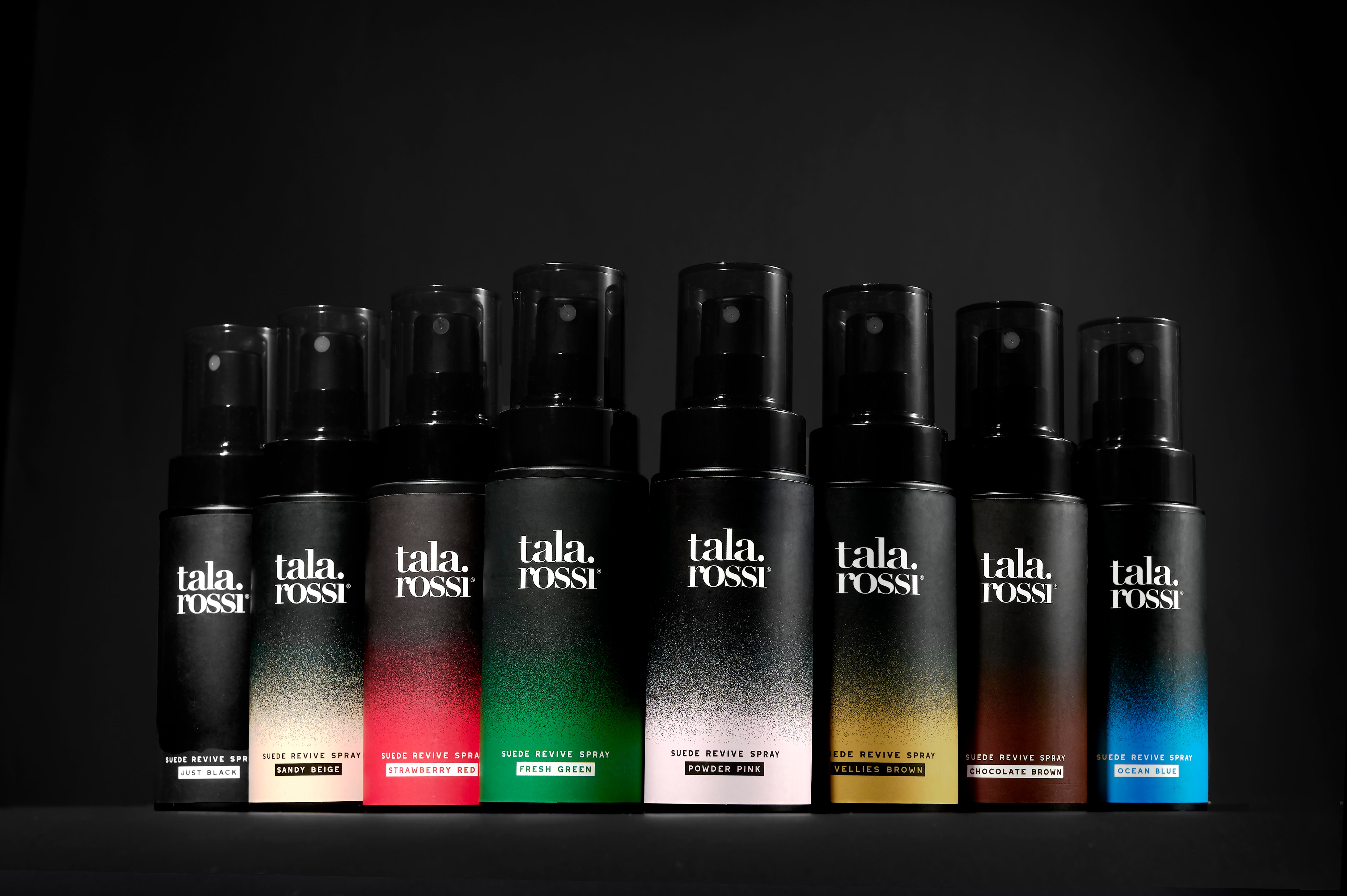 It all started with my yellow suede shoes. At office drinks, a tall guy accidentally stepped on my brand new yellow suede shoes, leaving a big black scuff mark. I knew that trying to fix it would ruin the colour, so I went looking for a suede revive spray that could match that shade of yellow. Turns out, I wasn’t the only one struggling to keep suede looking new — that’s how Tala Rossi was born.