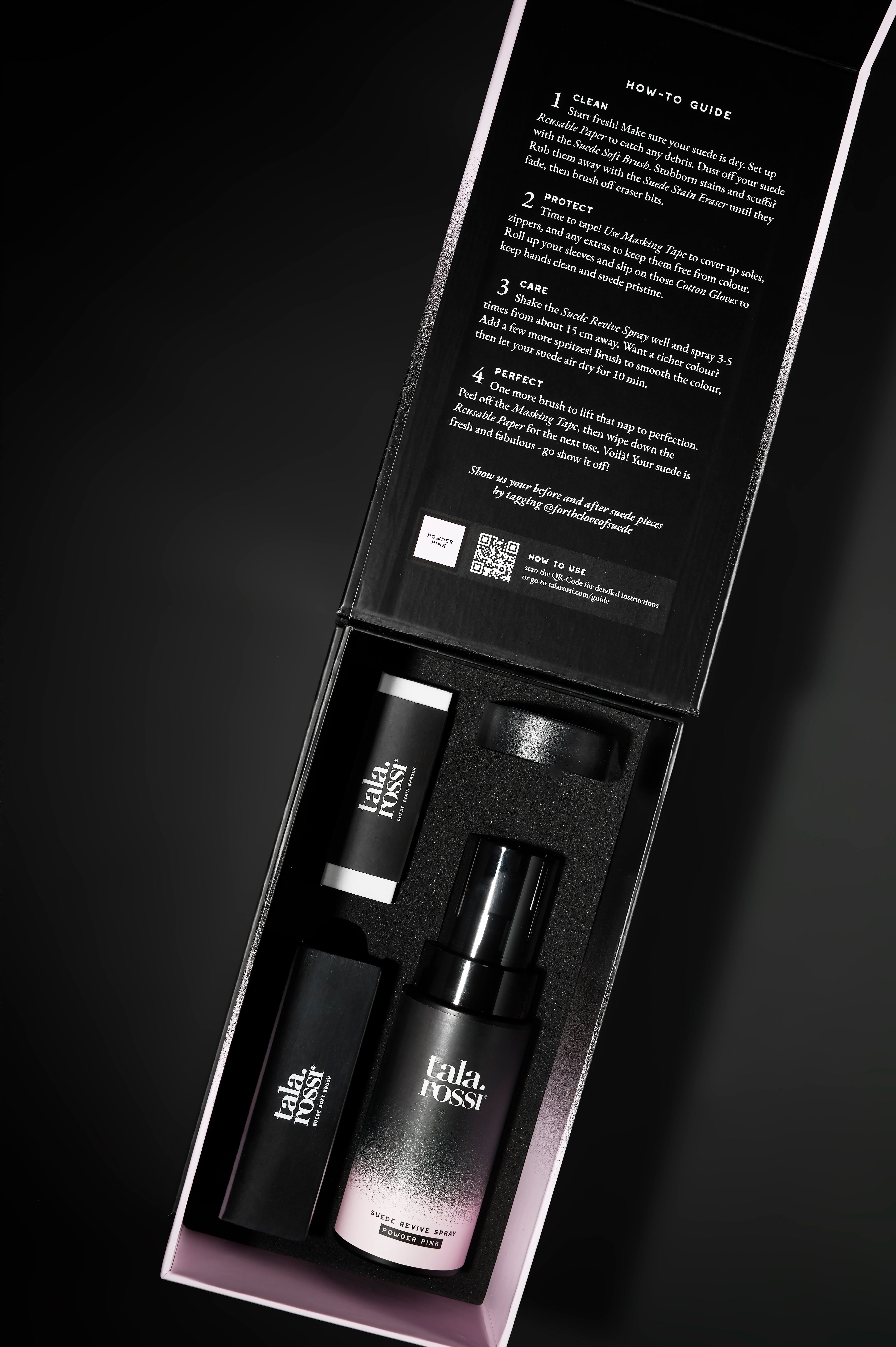 Clean and refresh your suede pieces effortlessly. Our all-in-one set gives you the essentials you need to restore suede colour and softness with confidence. The How-To Guide at hand makes it effortless.